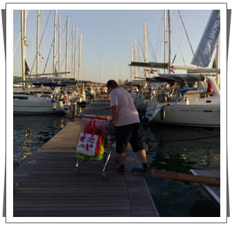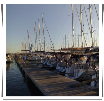 | Jest to niewielki port i dlatego panowie z mariny bardzo pilnują, żeby jachty były przycumowane jeden obok drugiego, zaczynając od samego przodu pomostów. | |