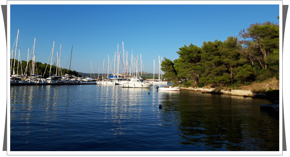 | Trochę za późno wyjechaliśmy (koło 8 rano) i zemściło się to na nas. Na granicy słowacko – chorwackiej nie było problemów, ale dalej to już było tylko gorzej. Wpakowaliśmy się w straszne korki i na miejscu w porcie byliśmy dopiero koło 17- tej. Trochę potrwały formalności przyjęcia jachtu, ale nam się nigdzie nie spieszyło, ponieważ nie zamierzaliśmy już wypływać tego dnia. | |