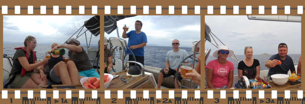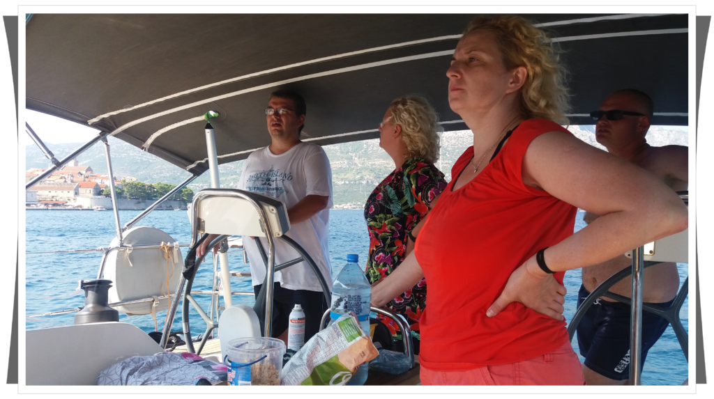 | Naszym portem docelowym na dzisiaj miała być Korčula. Kapitan uatrakcyjniał nam jak mógł ten rejs, przy okazji mieliśmy peeling całego ciała za darmo 🙂 | |