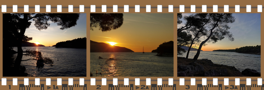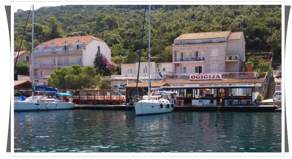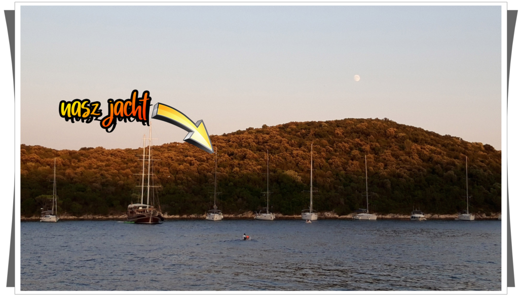 | Nadszedł więc czas na plan C. Wróciliśmy z powrotem pod Korčulę i postanowiliśmy przenocować w zatoce Luka. Na szczęście pora była jeszcze w miarę wczesna, więc miejsce jeszcze było. Trochę zajęło Pawłowi bezpieczne przycumowanie, ponieważ kotwica nie bardzo chciała trzymać. W końcu udało się, ale i tak wiązało się to z nocnymi wachtami. Trzeba było pilnować, czy jacht nie zbliża się niebezpiecznie do brzegu. |