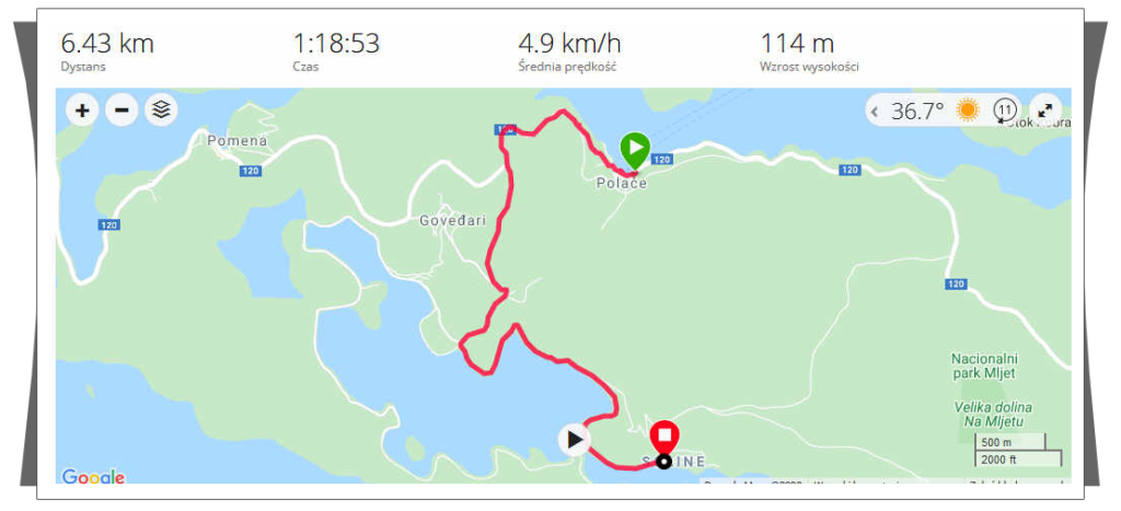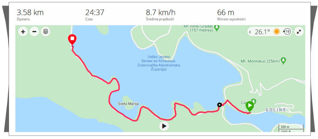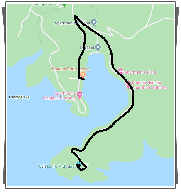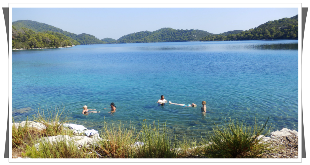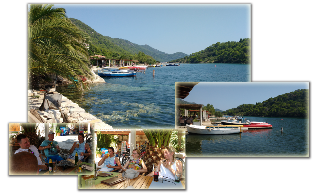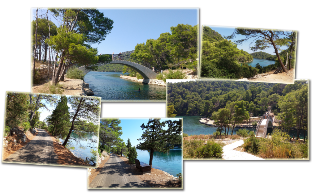 | Po szybkiej kawce, wybraliśmy się do wypożyczalnie rowerów, naszym celem było zwiedzenie Parku Narodowego znajdującego się właśnie na Mljecie. Na terenie tego parku znajdują się dwa słone jeziora – Veliko i Malo Jezero. Od strony otwartego morza, przez wąski przesmyk woda przedostawała się w głąb wyspy i tak powstało najpierw Wielkie jezioro i dalej wąskim przesmykiem woda przedostawała się do Małego Jeziora. Wyglądają jak jeziora, mimo, że są pełne słonej wody. Stąd ich nazwa. | |