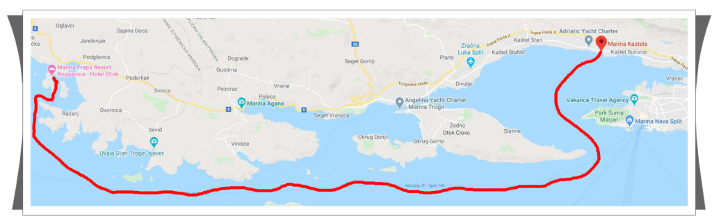 | Dzisiaj zaplanowaliśmy dopłynąć do Wysp Świętego Klemensa, do Mariny ACI w Palmiżanie. | ![]() |