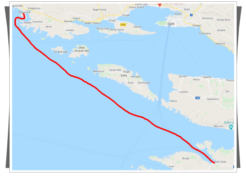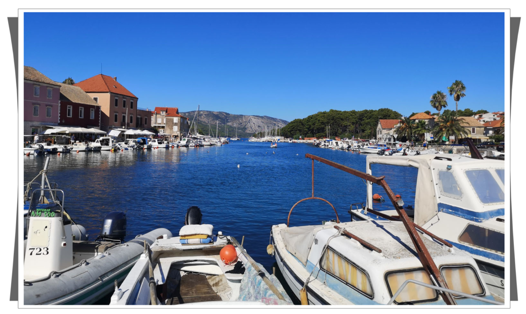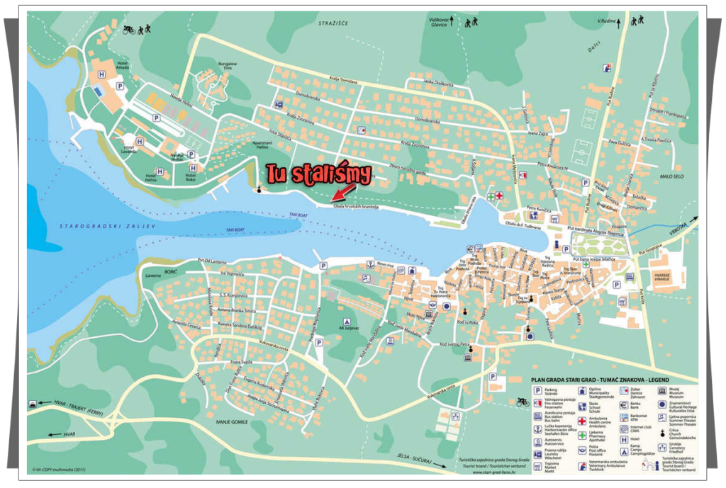 Przy okazji zrobiliśmy zakupy i mogliśmy wypływać. Dzisiaj płynęliśmy zupełnie bez pośpiechu, ponieważ za cel obraliśmy kolejną miejscowość na Hvarze – Vrboskę. Postanowiliśmy stanąć nie w marinie, tylko w miasteczku, co miało minus taki, że nie było sanitariatów, musieliśmy się zadowolić toaletami na jachcie. |