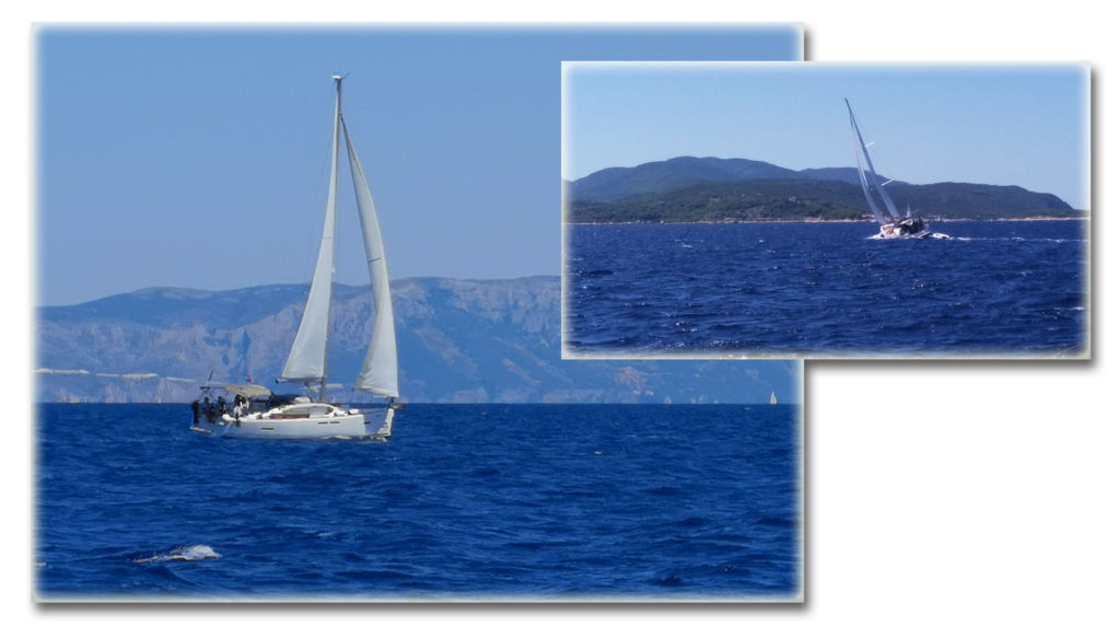 | W tym czasie zdążyło napłynąć jeszcze kilka jachtów i zaczęło się krążenie po zatoce i lekka nerwówka, po pierwsze, żeby być gotowym jak pan da znać, że można cumować, po drugie, żeby nie zderzyć się przypadkiem z innymi jachtami także oczekującymi na możliwość przycumowania. | |