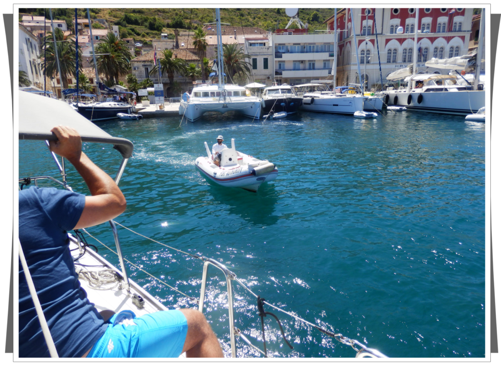 Koło godziny 14 – tej wpływaliśmy już do zatoki Viskiej. Nawet nie zdążyliśmy podpłynąć do centralnego nabrzeża a pan cumujący jachty już nas kierował dalszej części portu miejskiego. Na szczęście tam miejsce jeszcze było, ale musieliśmy się uzbroić w cierpliwość. Przed nami cumował katamaran i jakoś strasznie nieporadnie to robił. Mocny wiatr i duża fala tego nie ułatwiała. Udało mu się chyba za trzecim razem i z dużą pomocą pracownika portu. |