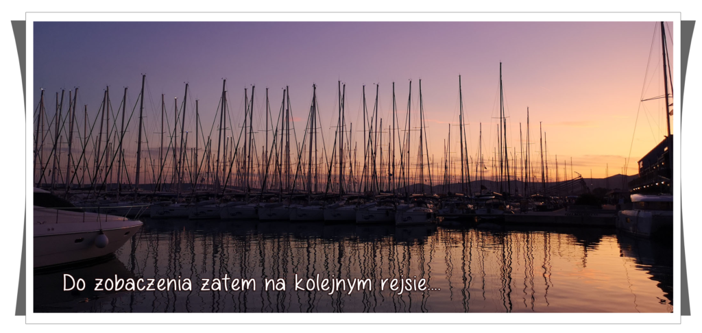 | Dzisiaj nam został powrót do Mariny Kasztela, bo rejs się kończy. Ciężko nam będzie powrócić do rzeczywistości po dwóch tygodniach pływania. | |
