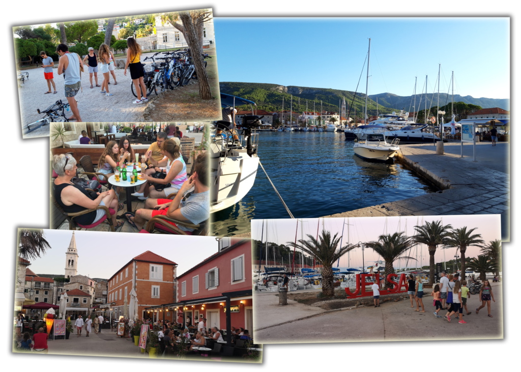 Najpierw spacer po miasteczku, a jak upał trochę zelżał, wypożyczyliśmy rowery i wybraliśmy się do Jelsy – pobliskiego miasteczka.