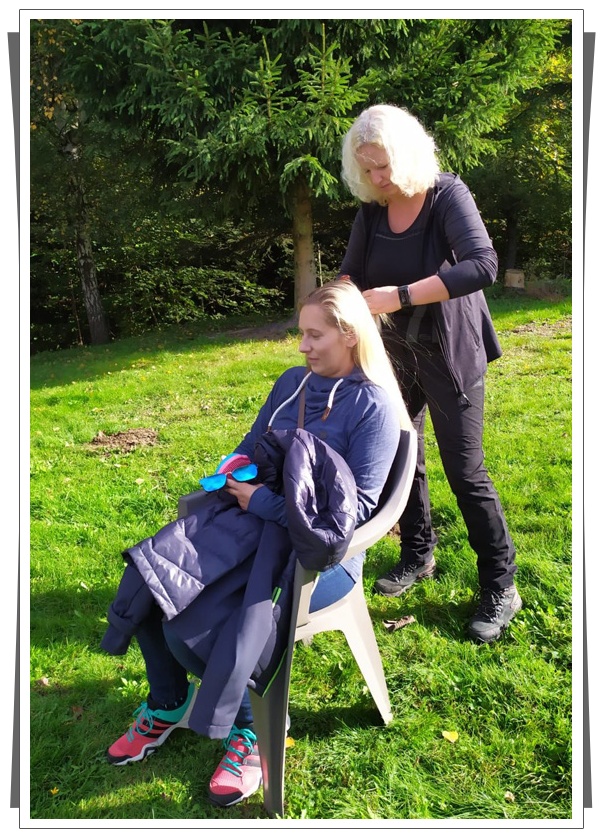 | Pierwszy kawałek drogi powrotnej przebiegłyśmy, bo było nam zimno, ale długo tak nie wytrzymałyśmy:) Zapadał zmierzch ale trasa była nam już znana, więc się nie przejmowałyśmy. Latarki włączyłyśmy dopiero jak minęłyśmy jaskinię niedźwiedzią. Do Kletna przyjechali po nas Paweł z Mańkiem, a w Leśnej Strudze trwały przygotowania do grillowania. |