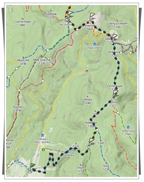 Spotkaliśmy się wszyscy w schronisku na pysznym czeskim jedzonku. A potem nadszedł czas na poważne decyzje, to znaczy ja z Renią zdecydowałyśmy przejść szlakiem z Dolnej Morawy na Śnieżnik, a pozostała część drużyny zamierzała wrócić samochodami do miejsca noclegowego.