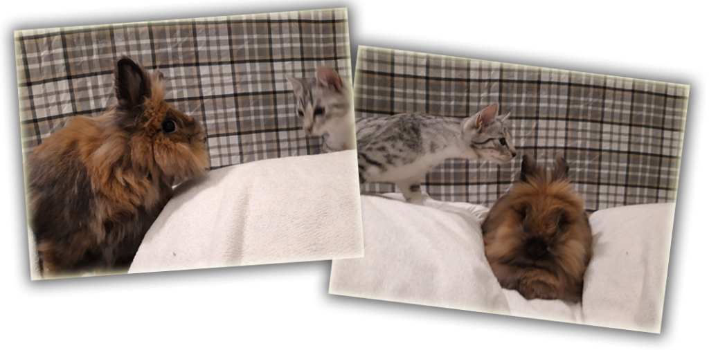 | Postanowiłyśmy z Anią zaprzyjaźnić nasze zwierzątka. Było bliskie spotkanie, jednak dla Rysi Felka była tylko duuuuużą zwierzą, na którą trzeba zapolować.