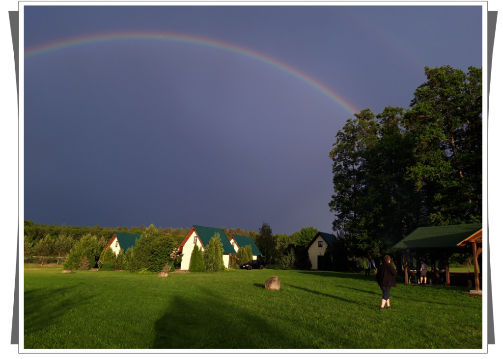 | Na rozległym terenie z dala od domu gospodarzy stoją 4 domki 3-4 osobowe. Zadaszone miejsce do grillowania, miejsce na ognisko, boisko do siatkówki, placyk zabaw dla dzieci. Przyjechaliśmy tam w okresie, kiedy dojrzewa jagoda kamczacka. Mogliśmy więc jej skosztować prosto z krzaka lub w dżemie, który gospodarze sprzedają jako produkt regionalny. |