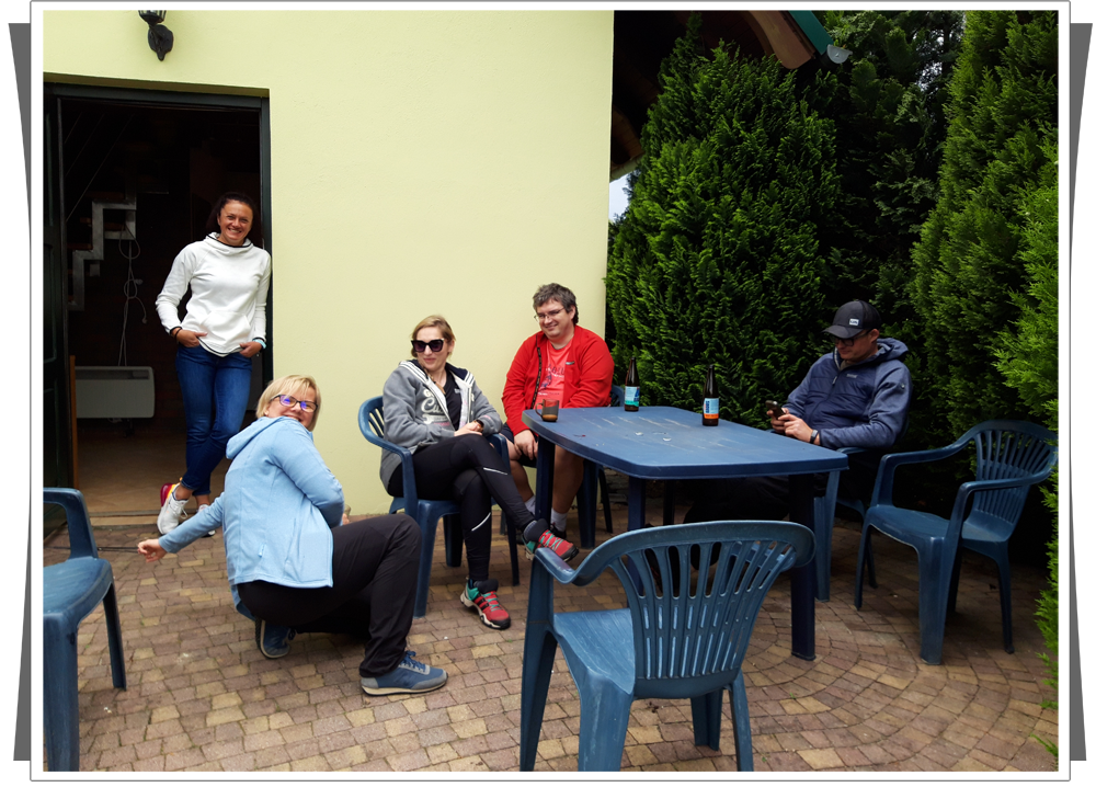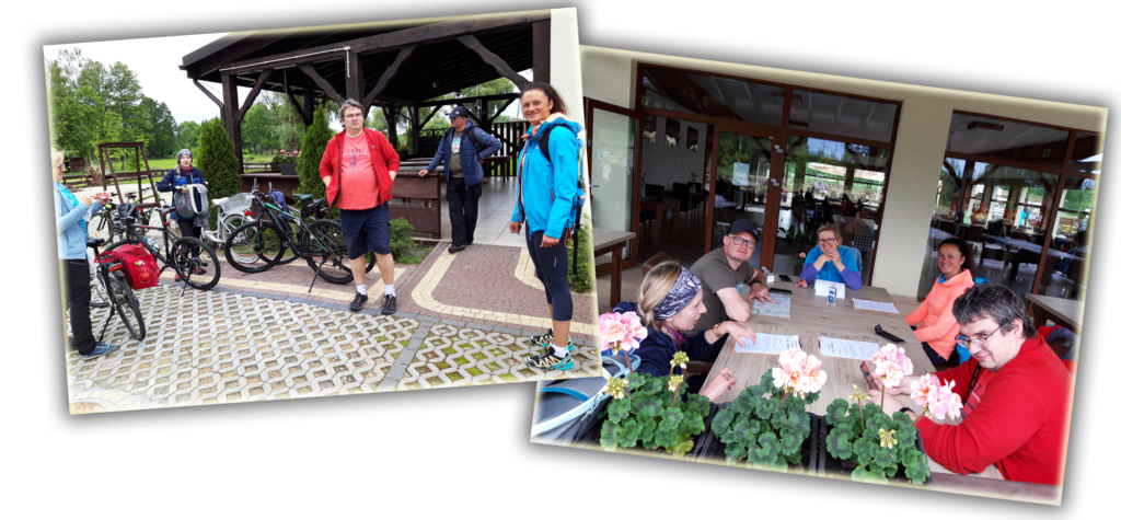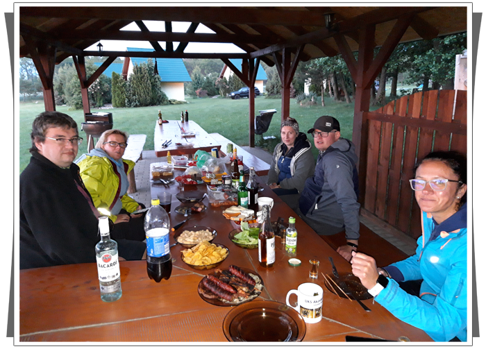 | Z Gosią i Tomkiem spotkaliśmy się już na miejscu noclegowym. Rozlokowaliśmy się w domkach, wypiliśmy kawkę i mogliśmy się zabrać za ustalanie dzisiejszej trasy. |