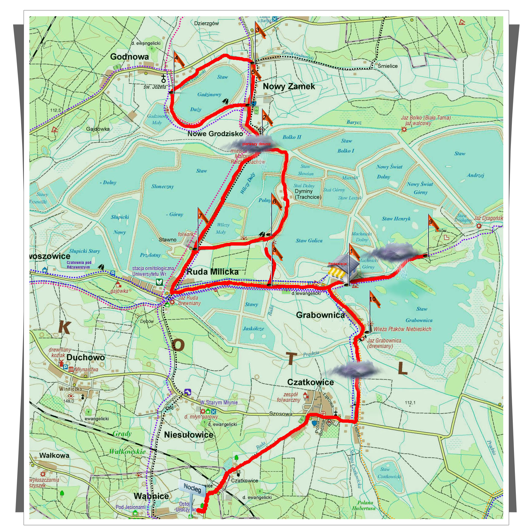 | Przeczekaliśmy deszcz, pojawiło się słońce i pojechaliśmy dalej. W sumie nie bardzo wiedzieliśmy gdzie jechać, nasz wybór padł na Wielki Staw Gadzinowy i pojechaliśmy na początek wzdłuż kanału Godnowskiego. Oczywiście gdzie jeździliśmy odczytaliśmy z mapy dopiero w domu. |